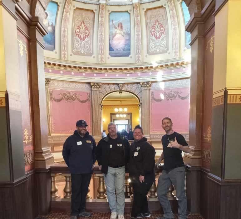 Photos of USW members rallying against anti-worker RTW legislation at the Michigan statehouse