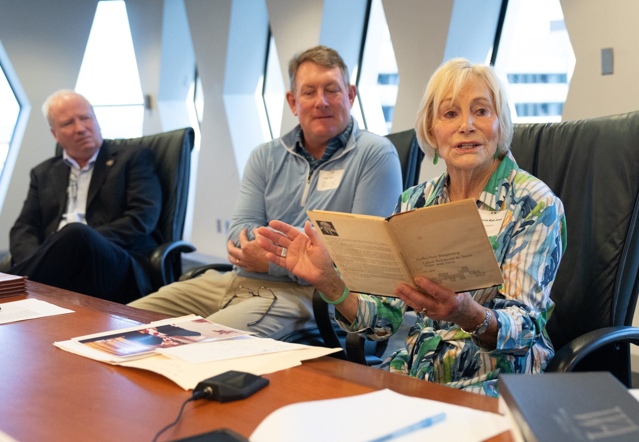 Karen Abel-Jones, daughter of I.W. Abel, USW President from 1965-1977, and her Grandson Greg Jones recently visited USW headquarters in Pittsburgh to meet with members of our Executive Board to donate historical items and papers to our archive museum.