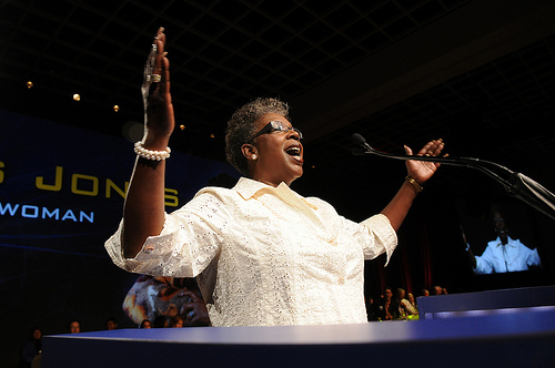 Congresswoman Stephanie Tubbs Jones (D-11th-OH)roused 4,000 local union leaders in her address to the USW’s Constittutional Convention, Aug. 1, 2008 in Las Vegas. (USW Photo by Steve Dietz).