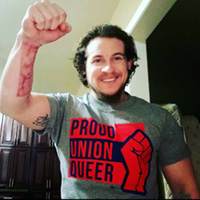 After leaving college, I searched for a professional community that could accommodate my passion for worker’s issues, and issues that disproportionately affect LGBTQ+ and BIPOC lives in this country. After many years, I finally found other voices within my union, and have the privilege to work with other members of the LGBTQ+ community to amplify the needs and voices of our Union members.