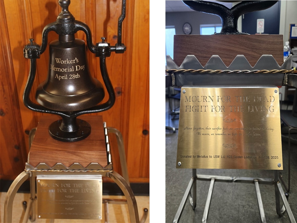 This memorial bell was dedicated on September 24, 2013, to Brother Novick and our USW brothers and sisters who have lost their lives in the workplace. This memorial bell has been used to commemorate Workers Memorial Day and at the USW International Health, Safety and Environmental conferences in their memory.