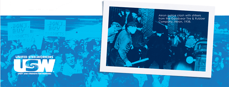Our union has a long history of successfully fighting for fair treatment. Many workers organized in the 1930s to make a better life for themselves and their families, and rubber workers led the way. When workers organized the first successful sit-down strike at Goodyear in Akron, Ohio, in 1936, the company attempted to violently disperse the sit-down strikers, enlisting local police to attack picket lines. But Rubber Workers remained strong, paving the way for a brighter future for all working people.