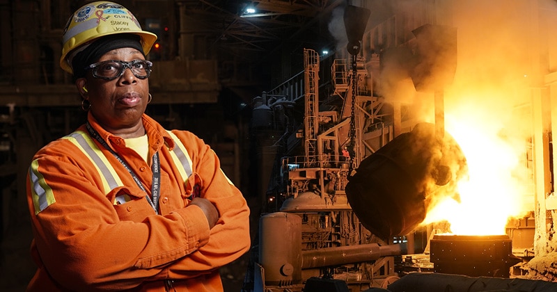 “It gives us a sense of security, because we know that we rolled that right here in America,” said Stacey Jones, a USW member for 36 years who spent more than 30 years in the rolling mill, where she produced deck plates used in shipbuilding.