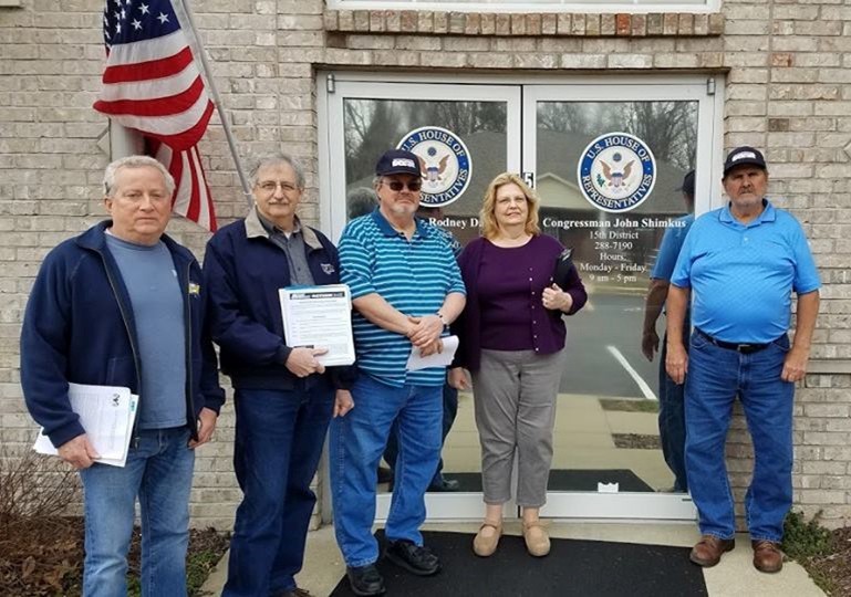 Granite City, IL. SOAR Chapter 7-34-2 members met with Illinois Congressman John Shimkus R-Collinsville asking his support for H.R. 397, the Rehabilitation for Multiemployer Pensions Act. Left to Right are Doug May, Dennis Barker, Ron and Cynthia Overby and Chapter President, Jeff Rains