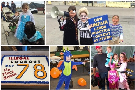 In Washington, locked out Steelworkers held a Halloween party on the picket line, complete with trick-or-treating and a costume contest for kids. In Brackenridge, hundreds of locked out families came together for a picnic at the Tarentum Volunteer Fire Department Pavilion. In Albany, locked out families got a head start on Halloween with a visit to the Bose farm pumpkin patch on October 26, and they continued the celebration with a Halloween family party at the local union hall.