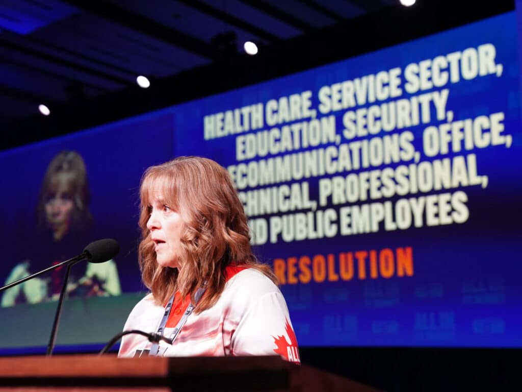 Delegates also passed a resolution – entitled “Healthcare, Service Sector, Education, Security, Telecommunications, Office, Technical, Professional and Public Employees” – that recommitted the union to organizing workers in health care, telecommunications, education and public sector jobs, while addressing issues such as artificial intelligence, health and safety, staffing standards, mental health and workplace violence.
