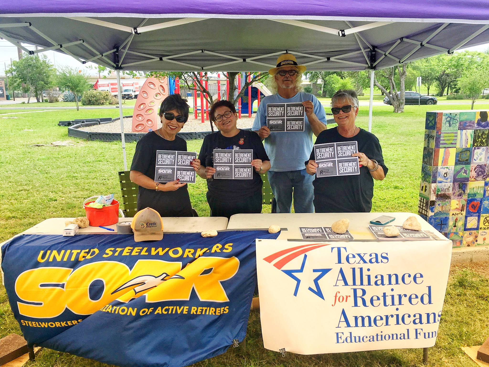 In return, SOAR 13-1 has provided modest financial support to these groups, and shown them solidarity by tabling events that they’ve organized. The Texas Alliance for Retired Americans has been supporting and helping to provide volunteers to staff these tables.