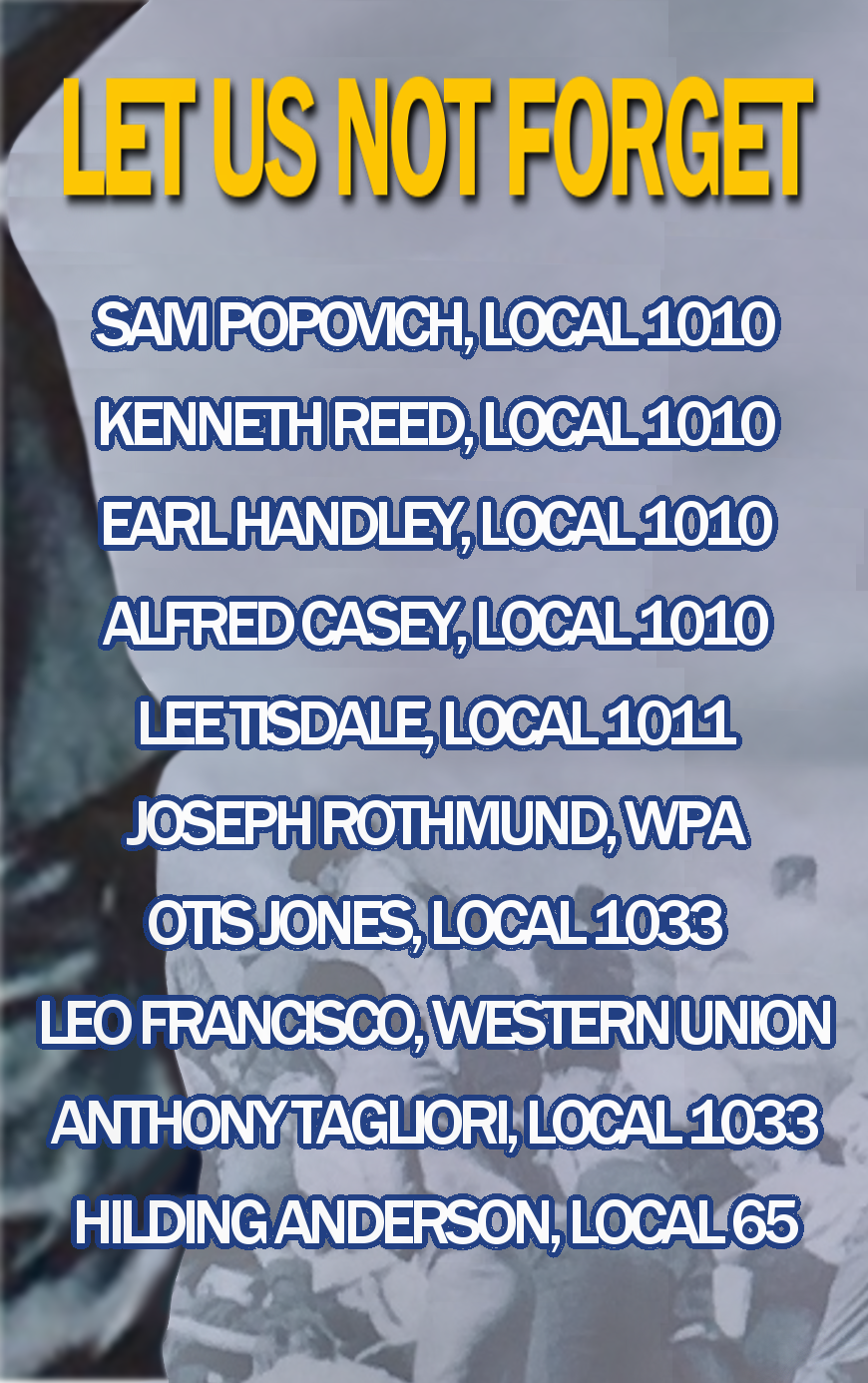 On Memorial Day 1937, Republic Steel workers, with families and supporters, marched peacefully to the plant gates; demanding union recognition and a contract for “Little Steel.” They were met by Chicago police officers hired by Republic Steel, who opened fire killing ten marchers. Many more marchers, including children, were wounded and beaten resulting in serious injuries.