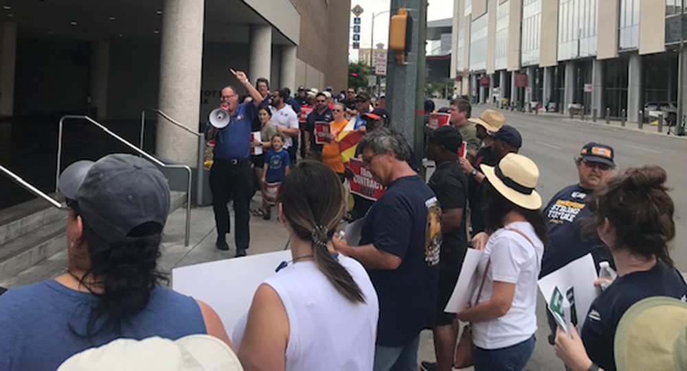On May 29, USW members rallied outside the 5th Mexico Gas Summit in San Antonio to call on Grupo Mexico and its subsidiary ASARCO to stop attacks on workers and negotiate in good faith for a fair contract.
