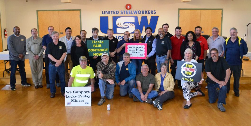 About 260 members of Local 5114 have been on strike over Hecla Mining’s unfair labor practices since March 13, 2017, after working for 11 months under the terms and conditions of an expired previous contract.