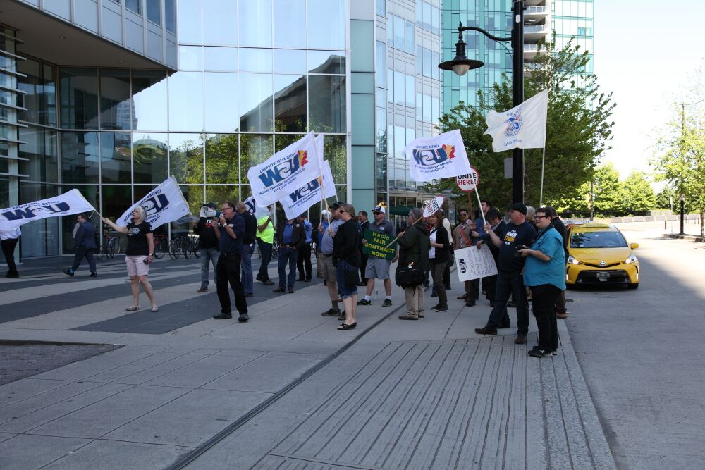Finally, in Vancouver, on May 25, 2017, close to 50 union brothers and sisters from Canada, members of Los Mineros from Mexico and the Local 5114 delegation from the United States rallied outside Hecla’s shareholder meeting to show international solidarity and demonstrate the power of unity.