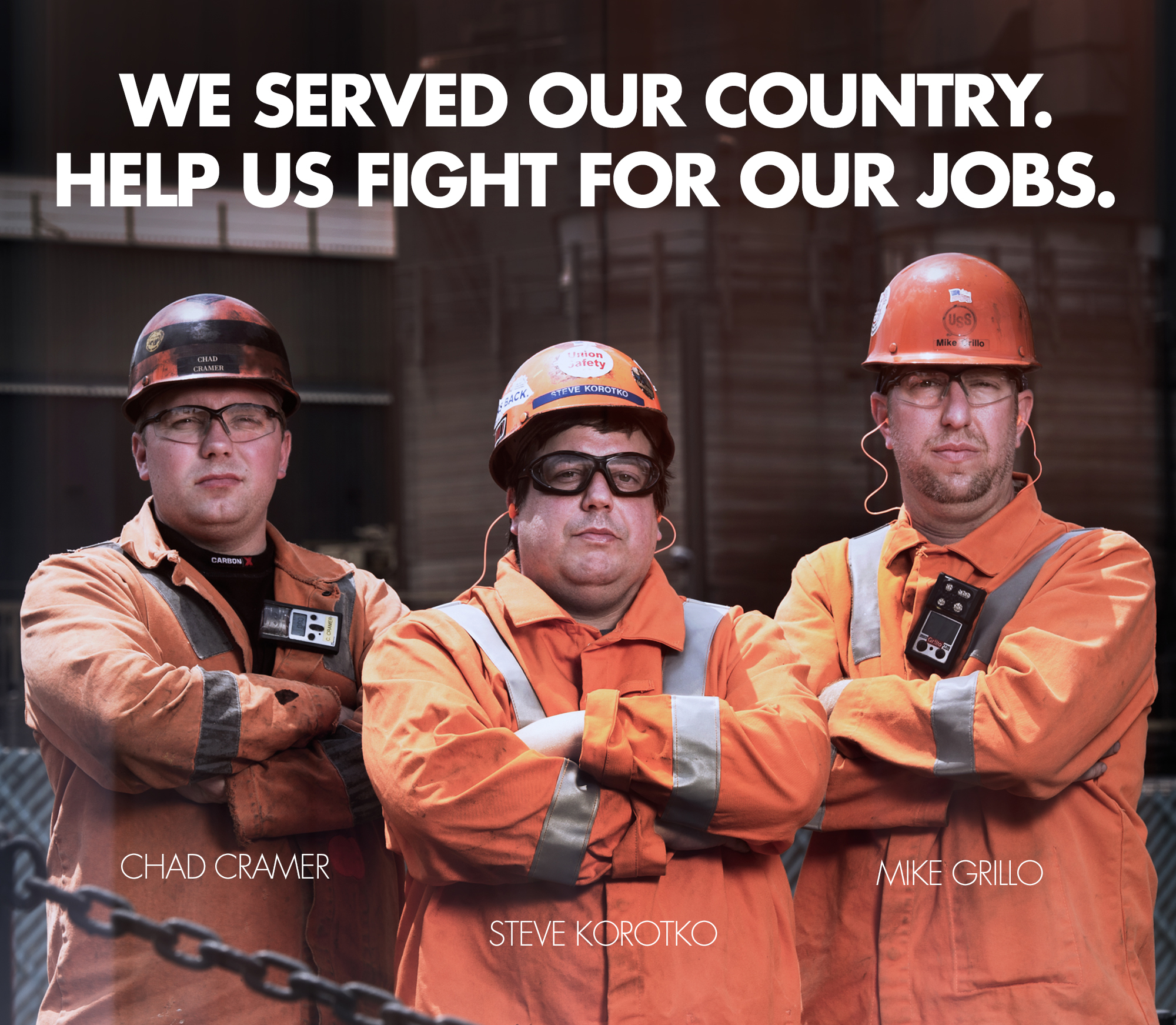 Steve Korotko, Specialist, United States Army (93-97), Chad Cramer, Lance Corporal, United States Marine Corps (03-07), and Mike Grillo, Corporal, United States Army (90-94) are members of USW Local Union 1219, serve as safety reps and work for United States Steel in Braddock, PA.