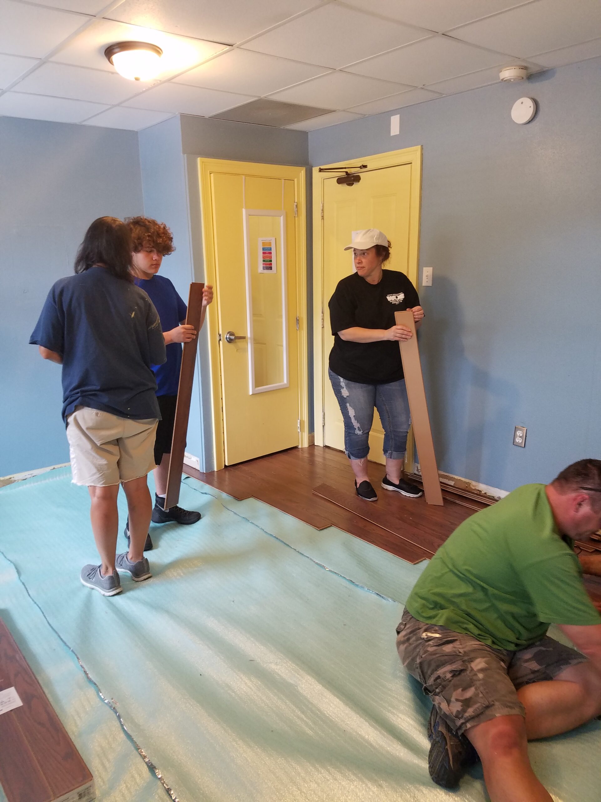 Women in the council invited their husbands, families and fellow union members to help rip-up old carpet, install new wood flooring, paint walls and remove old furniture. Then, the volunteers brought in new furniture, replaced all the bedding, and decorated with lamps, rugs and pictures. They even bought and installed a closet door that was missing.