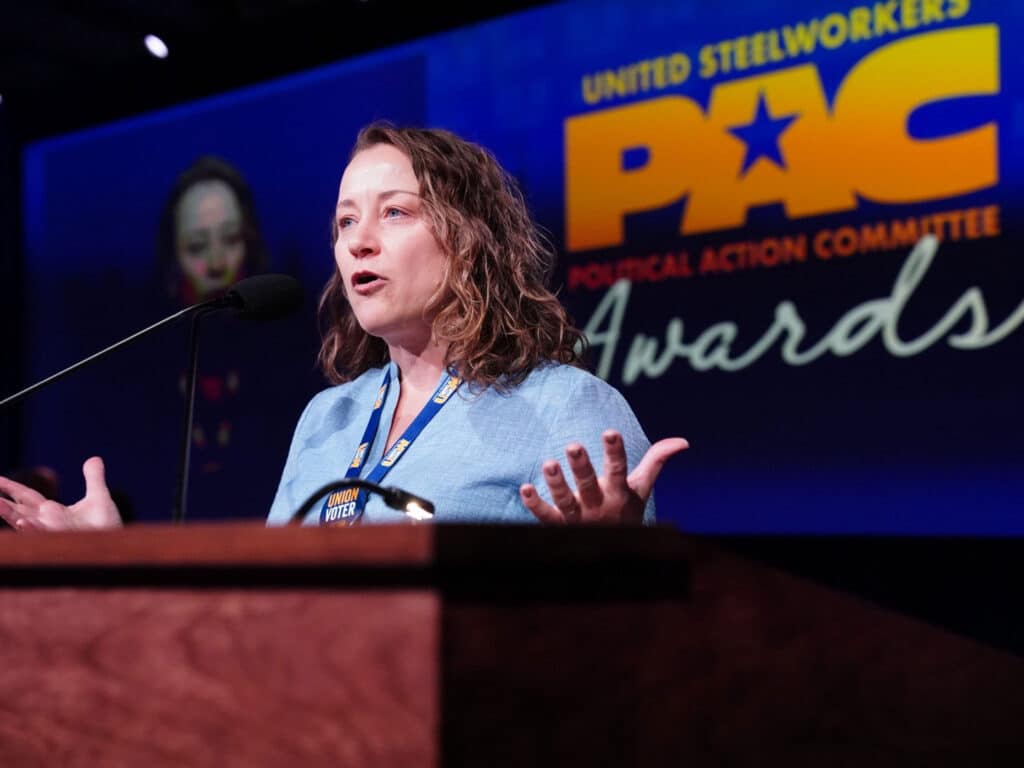 “I know which side really fights for us,” Jake Baskey, a delegate and member of Local 1915 in Pemberville, Ohio, said from the convention floor earlier this week. He noted that former Sen. Sherrod Brown long worked alongside USW members while another Ohioan, JD Vance, refused even to meet with workers.